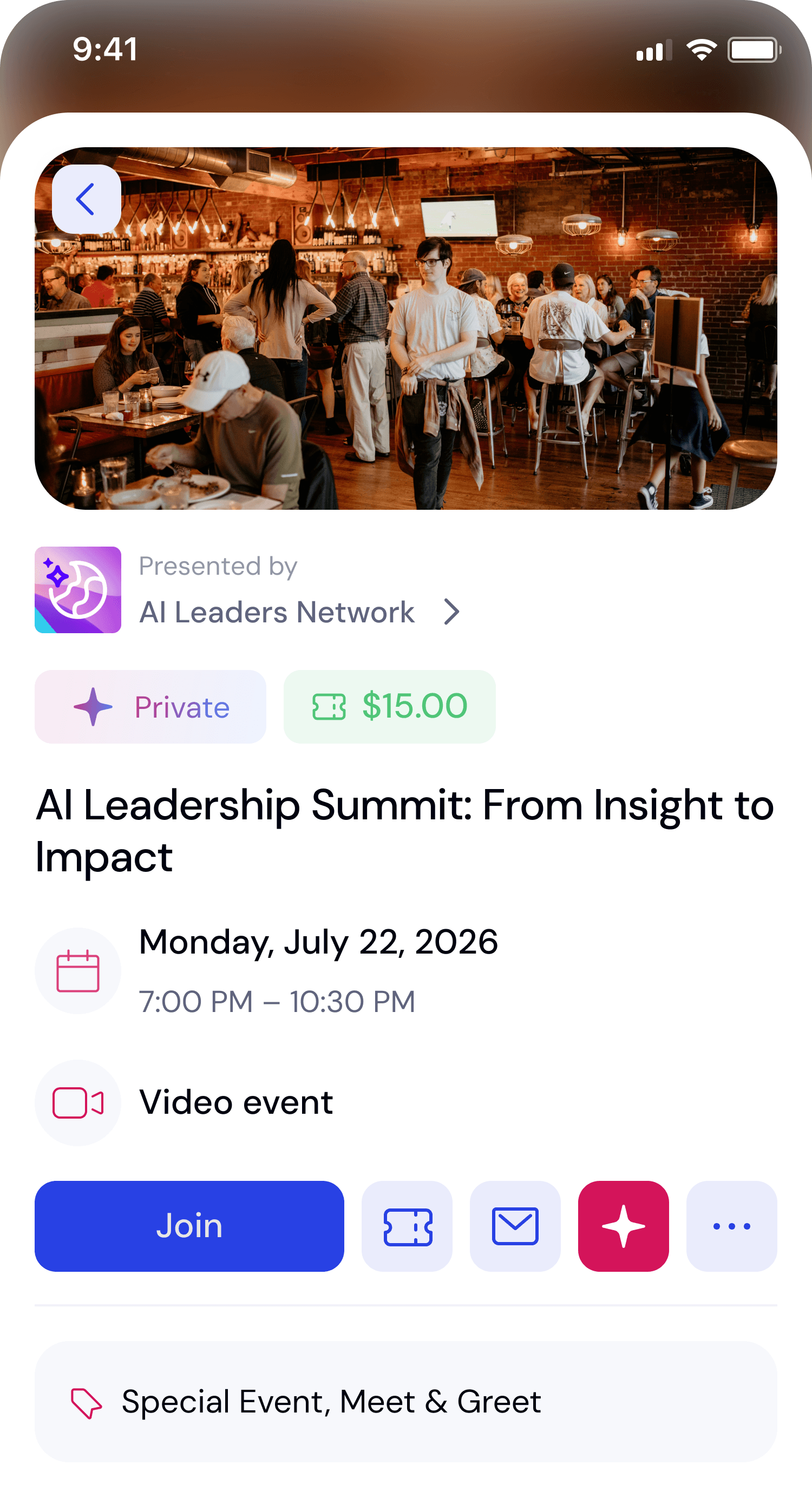 Run events with built-in networking, AI-powered matching, meetings, lounges, and follow-ups.