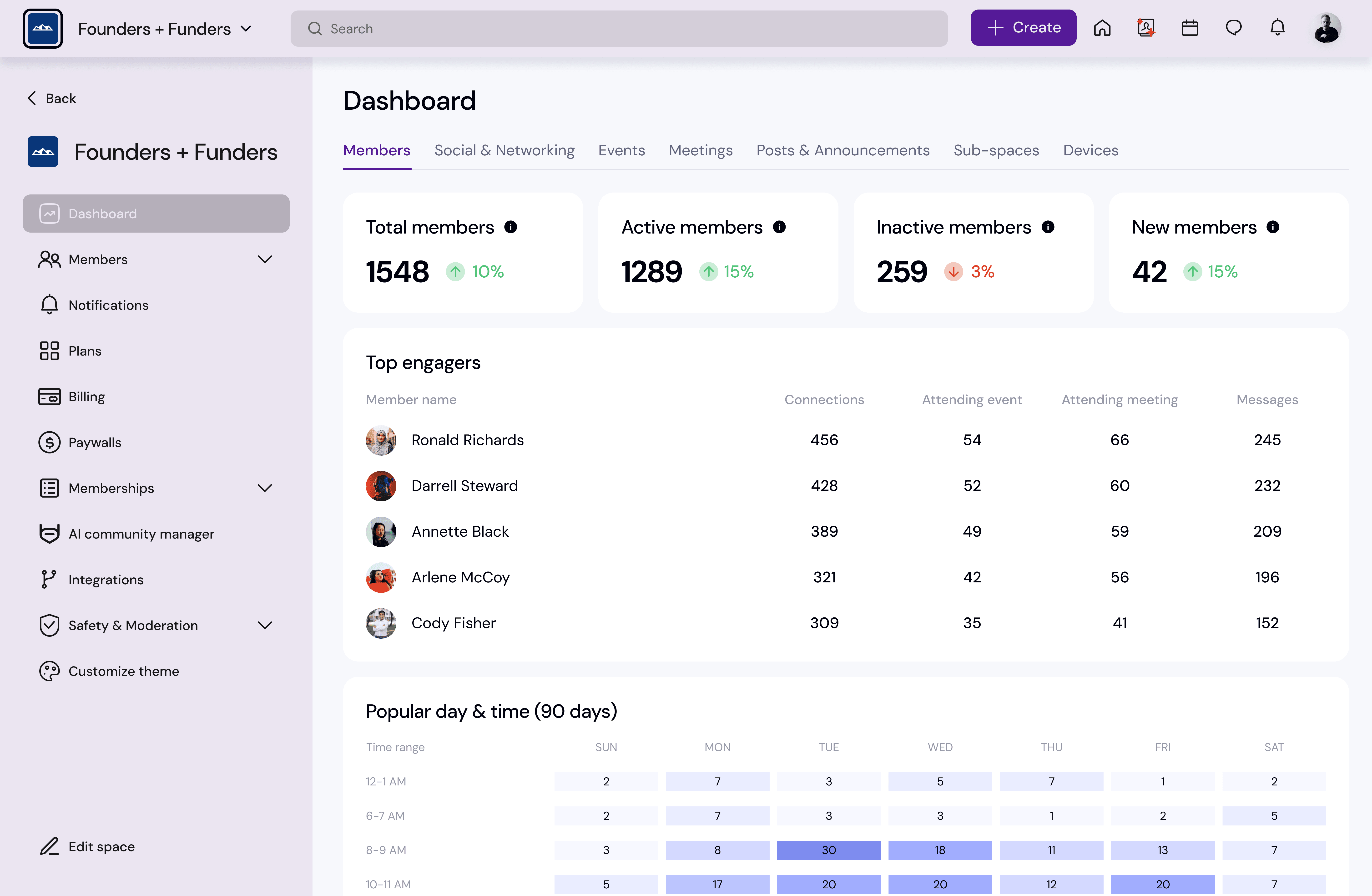 Track engagement, activity, and retention across Spaces, Sub-spaces, and Sections.