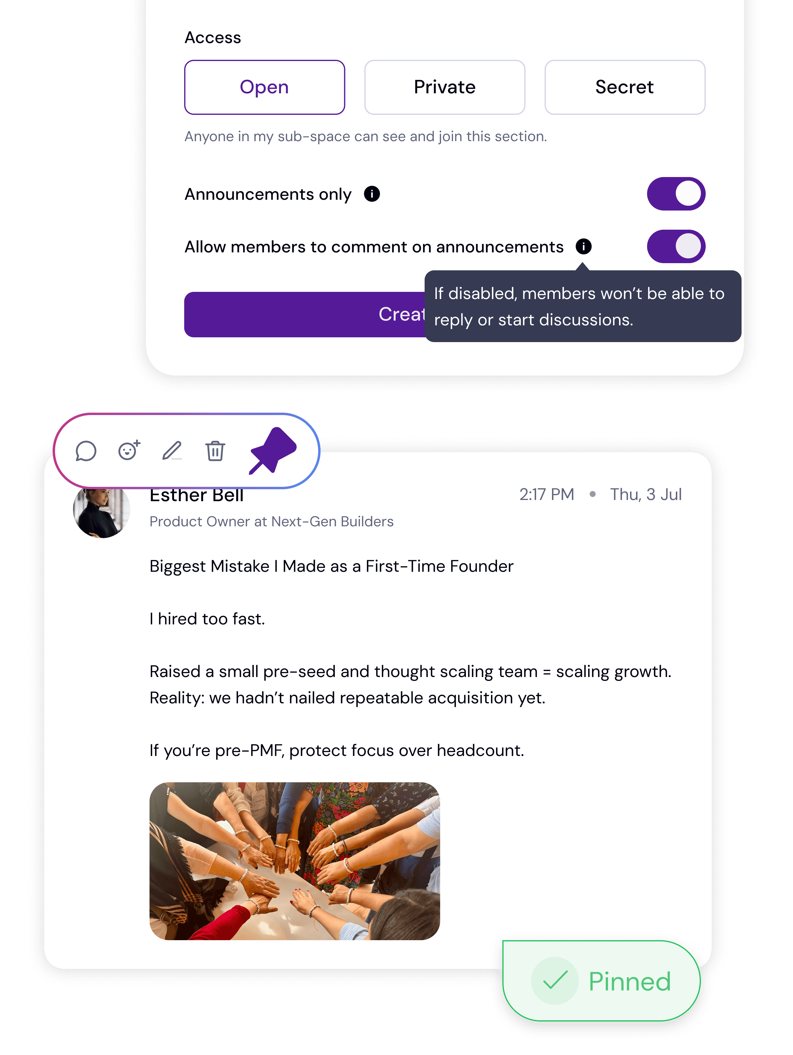 Turn announcements into ongoing threads