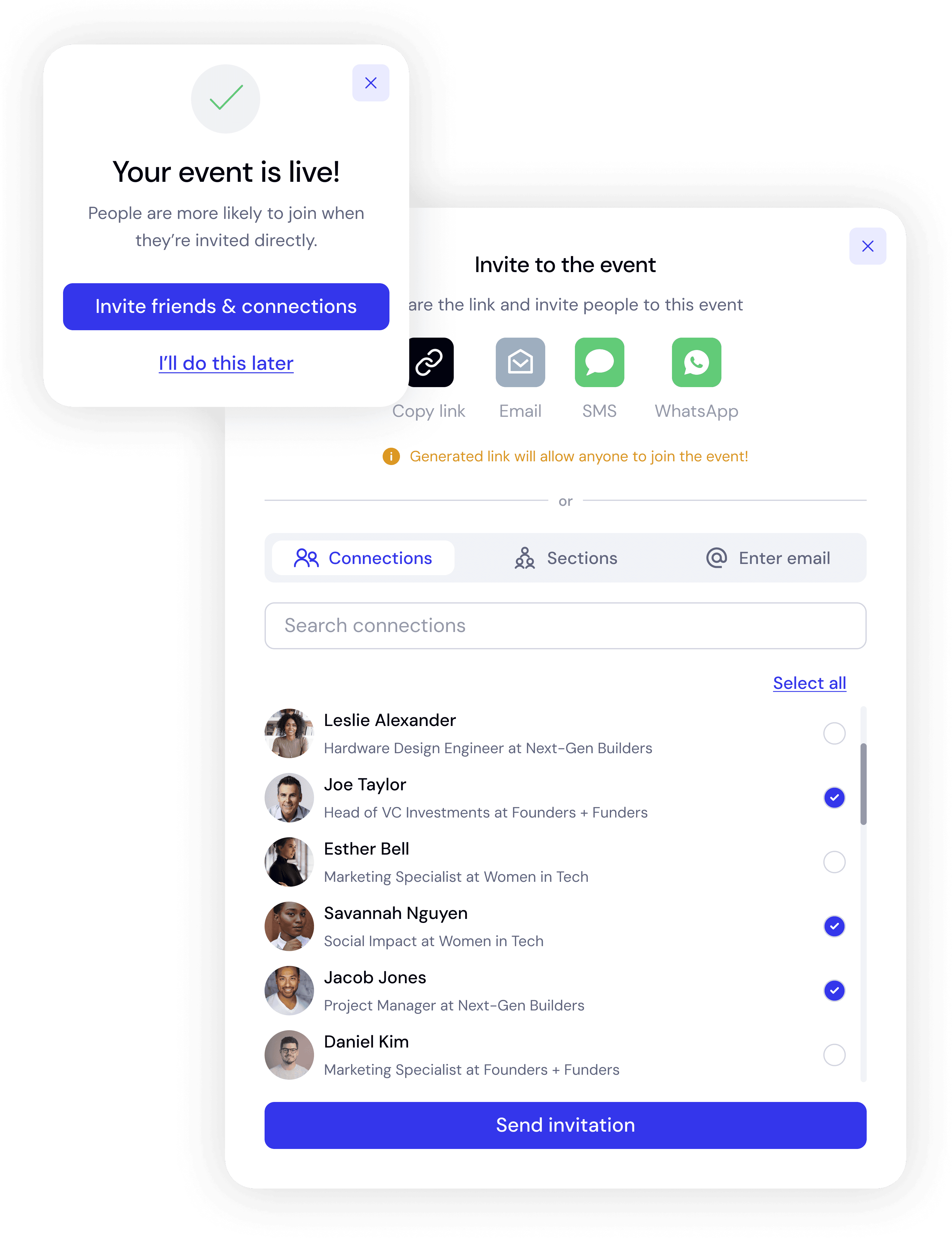 Built-in RSVP and calendar sync