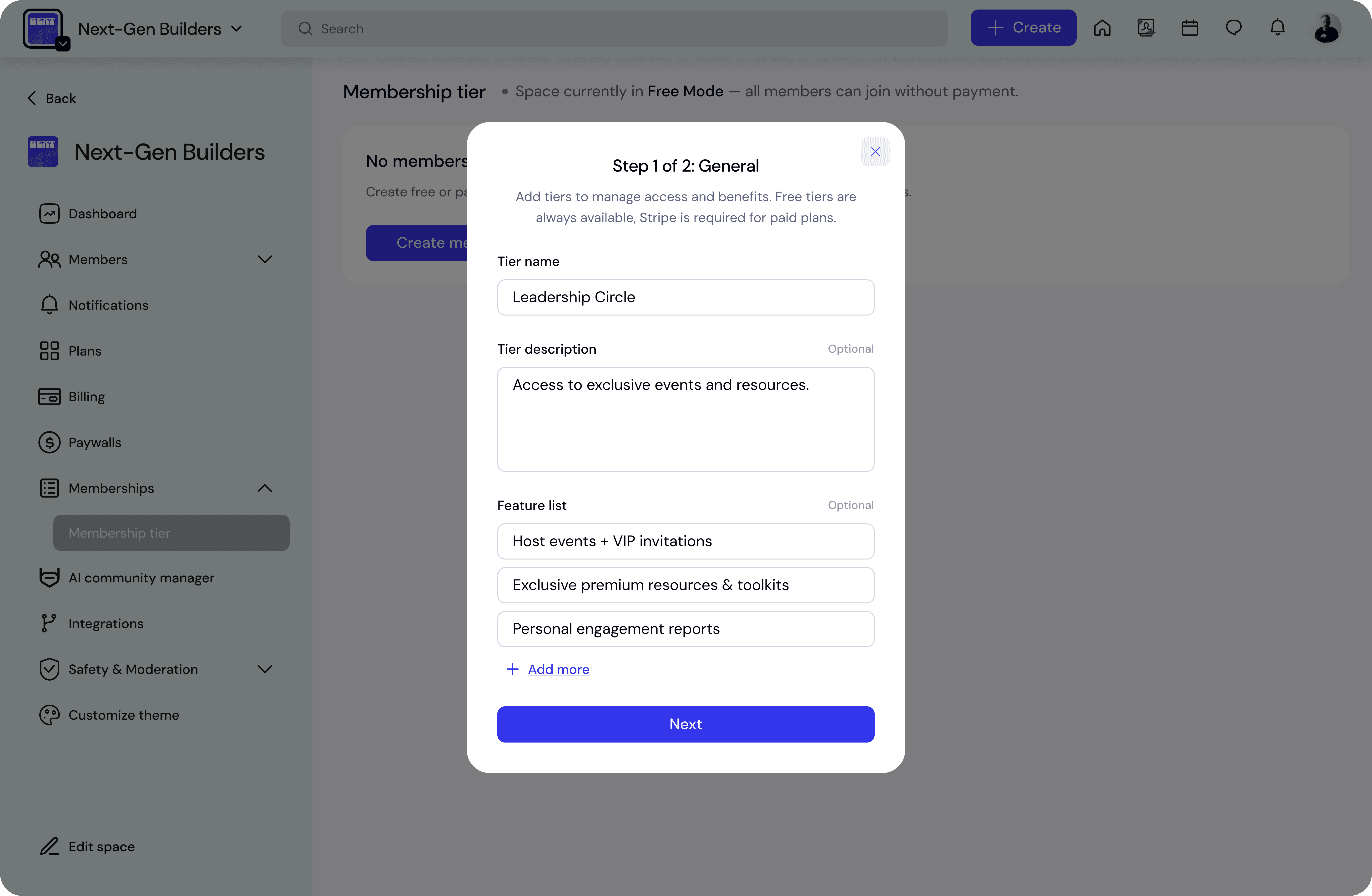 Click Create membership tier.