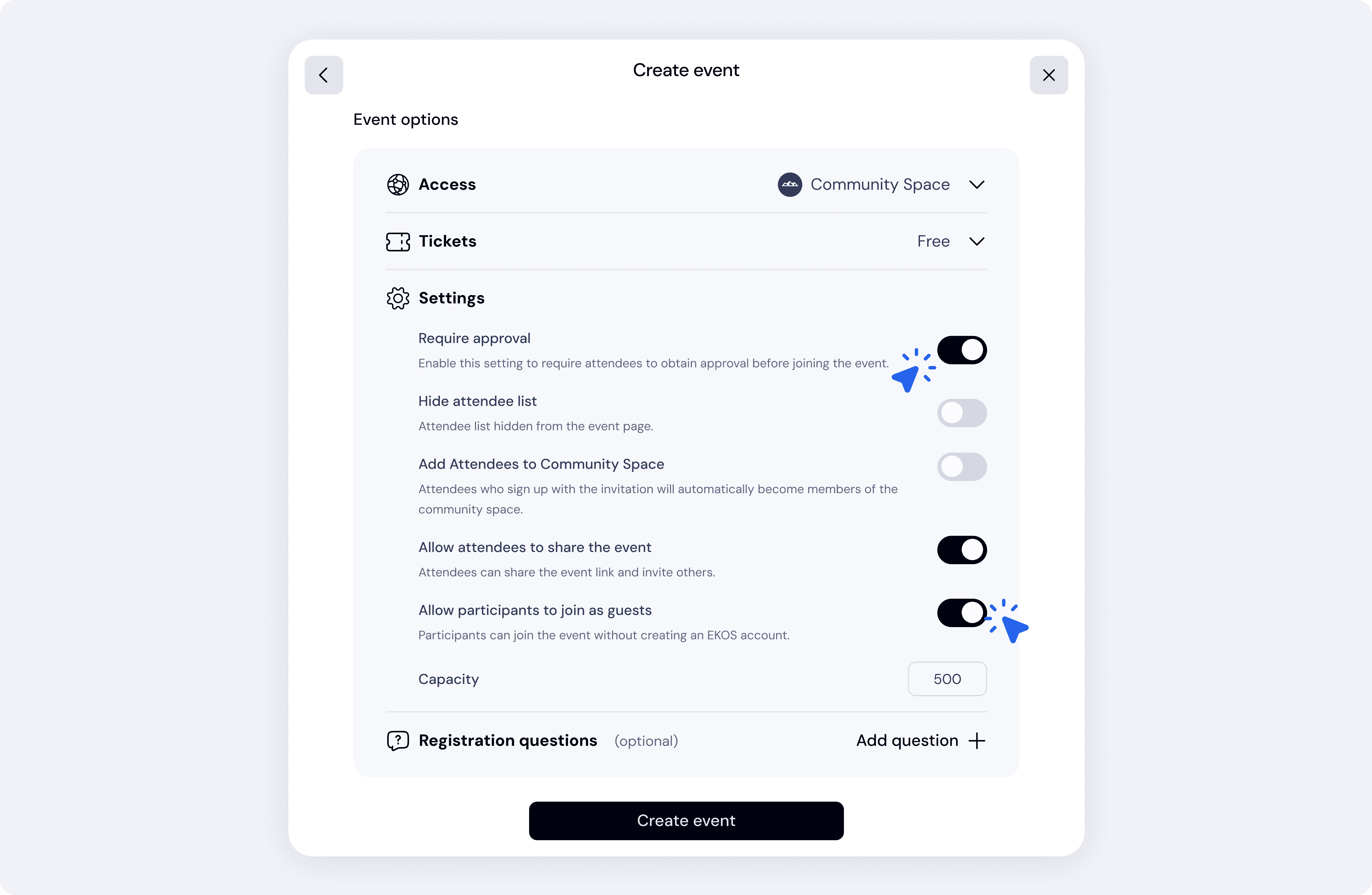 This setting is especially useful for public or growth-focused events.
