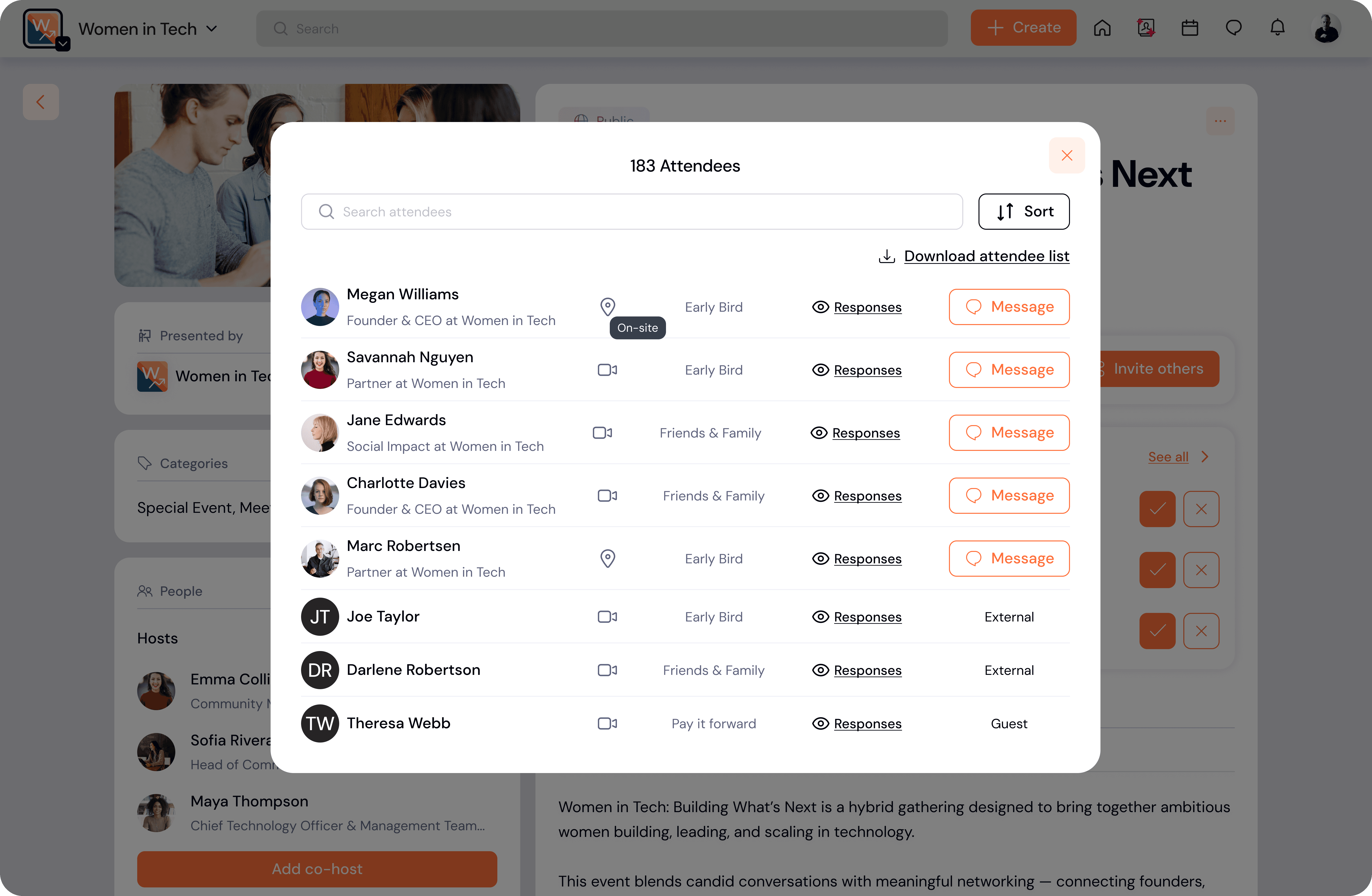 Hosts and admins have full visibility over the attendee list.