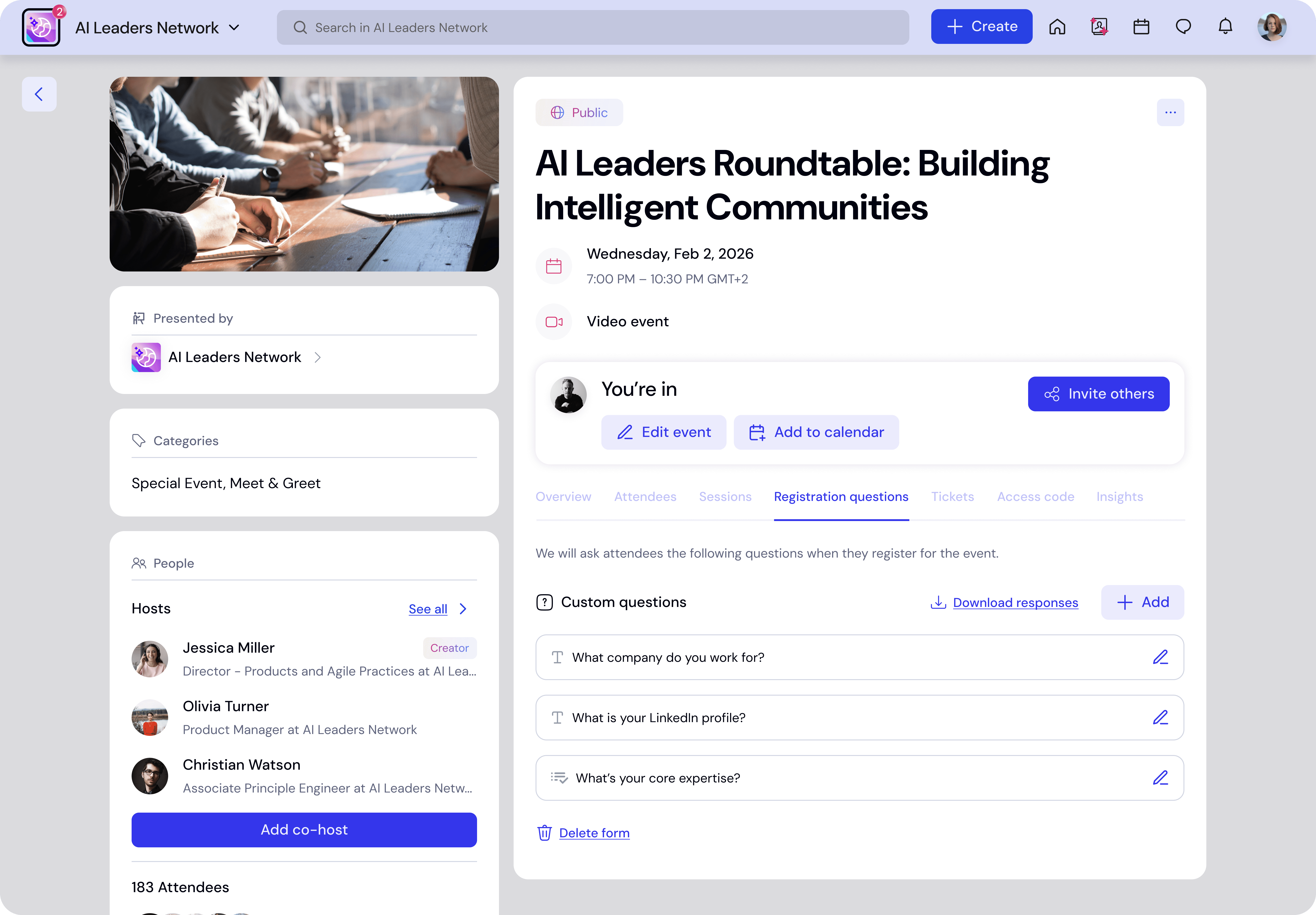 Registration questions allow event hosts to collect additional information from attendees during event registration.