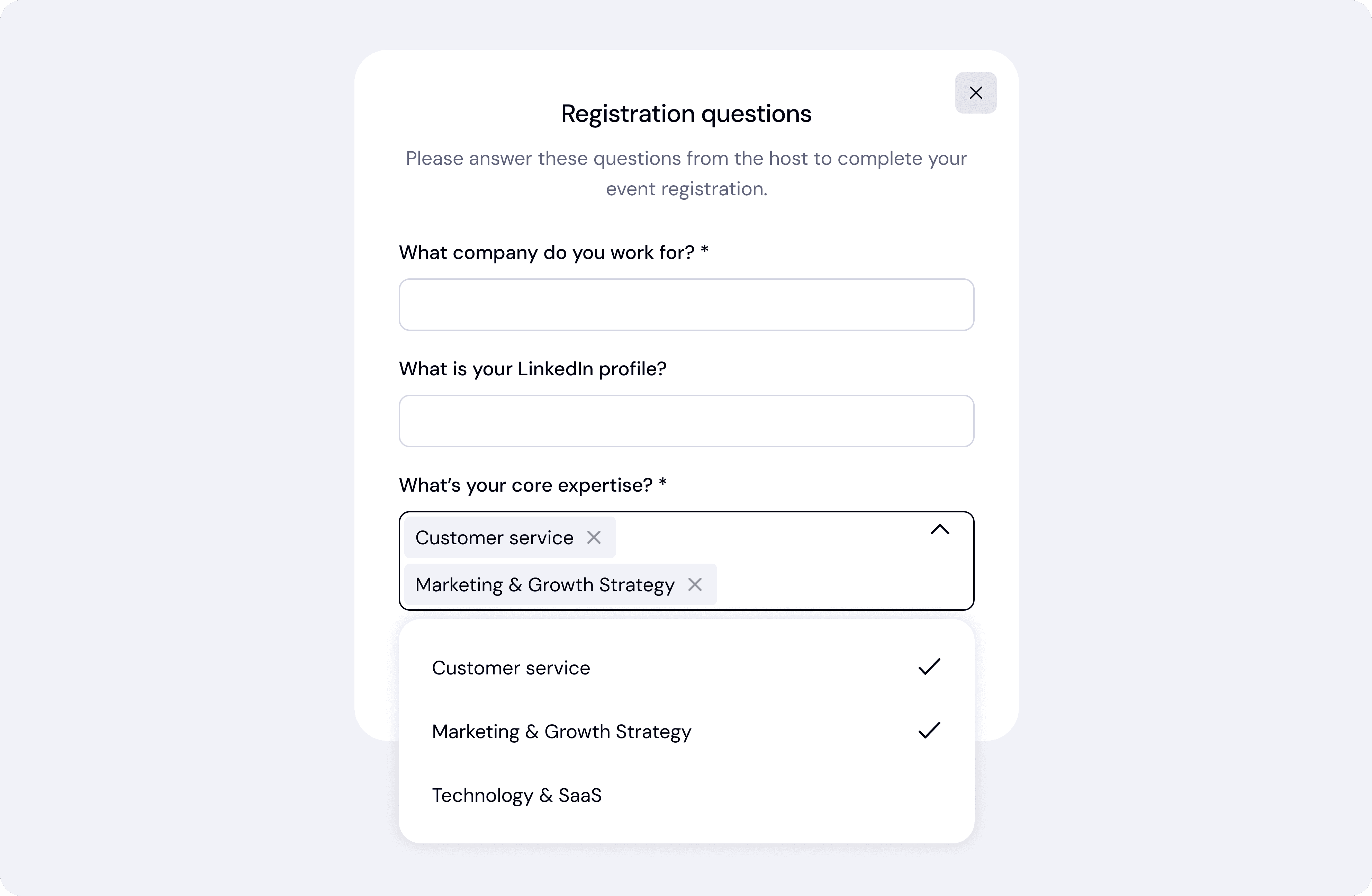 Attendees answer these questions when they register for the event.