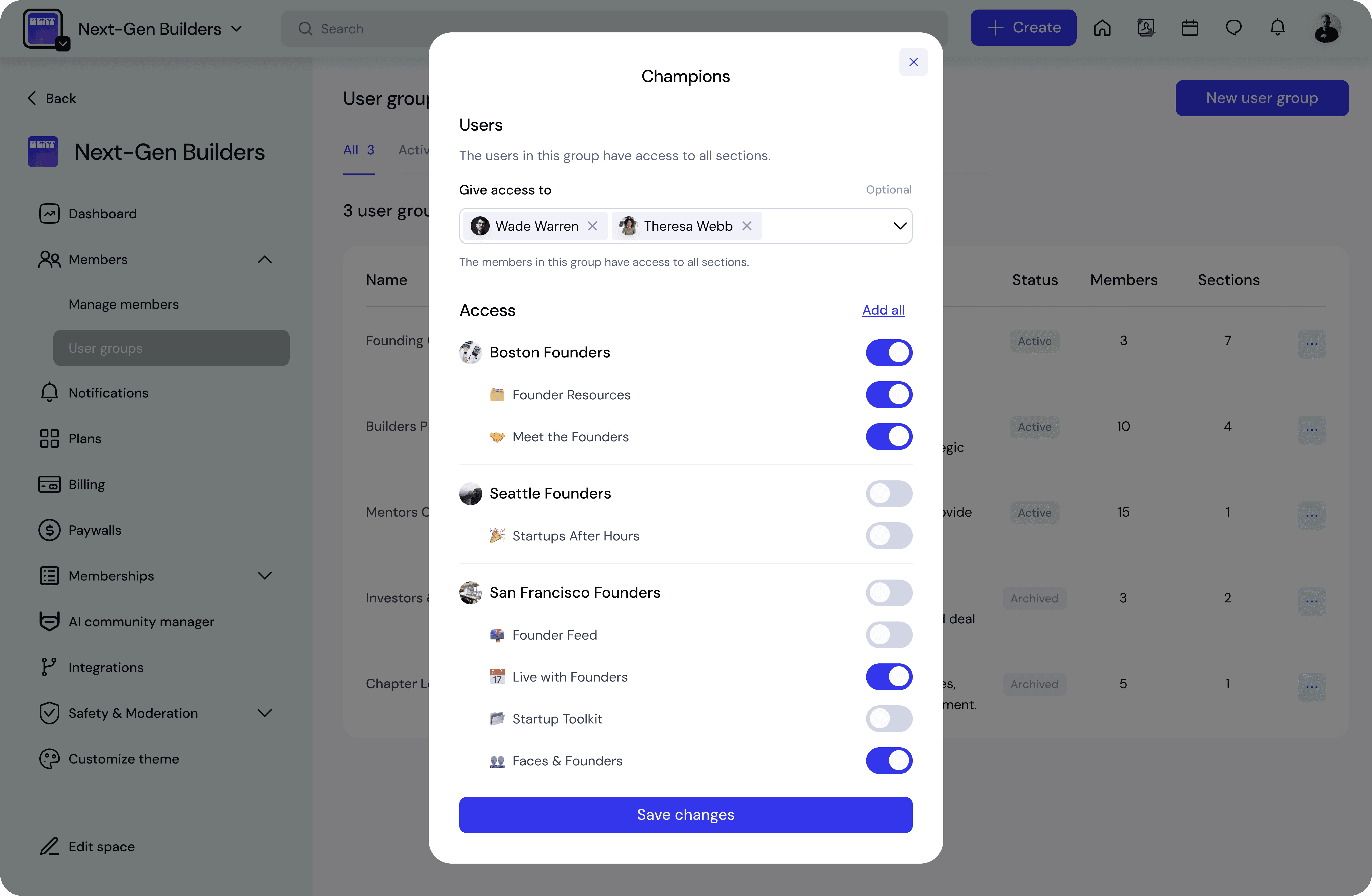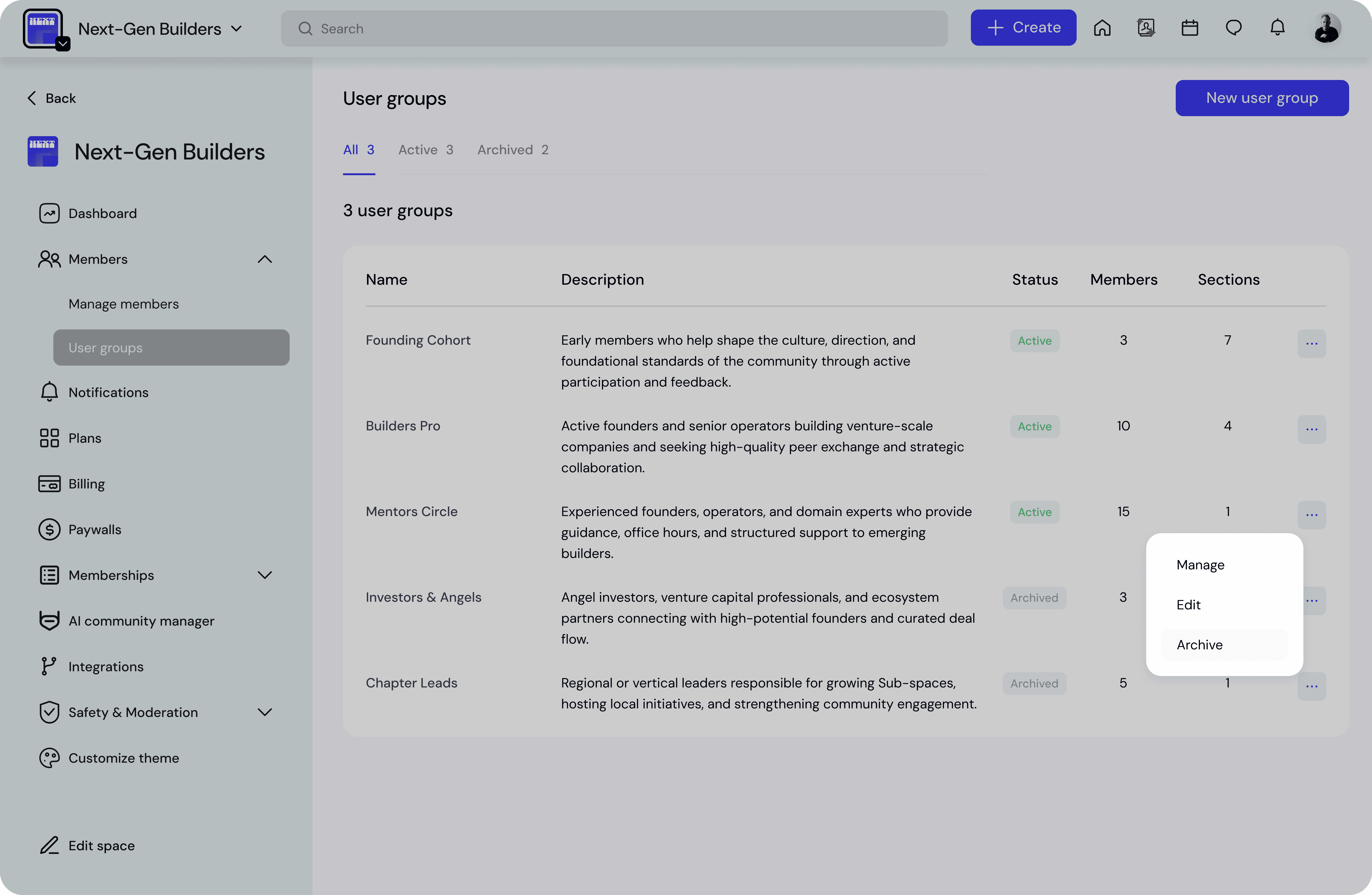 User groups allow you to control which members can access specific sub-spaces and sections in your community.